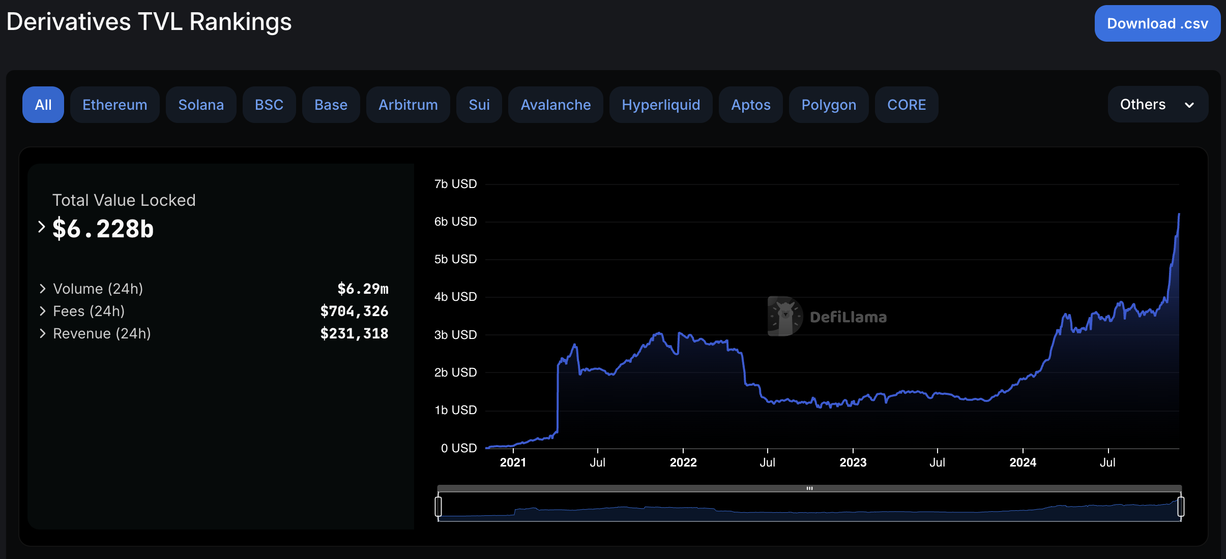 This success raises the possibility of a renewed market focus on DeFi, particularly decentralized perpetual protocols, in the same sector as Hyperliquid. Recent data from DefiLlama supports this potential trend, showing a notable increase in the total value locked (TVL) across derivative protocols. This growth highlights the increasing relevance of these platforms within the DeFi ecosystem.