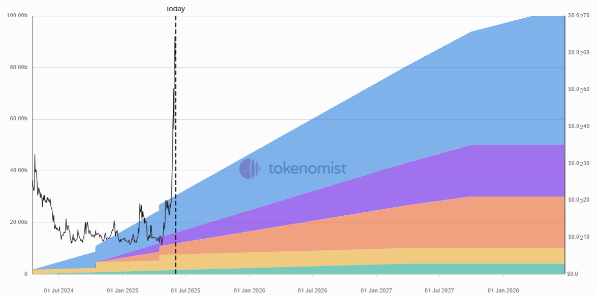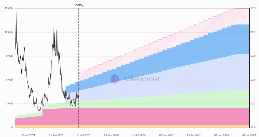 $ENA leads this week in terms of dollar value unlocked, but the release represents only a small percentage of its circulating supply. These unlocks are part of the ongoing vesting schedule for insider cohorts, including core contributors and early investors. With 29% of insider allocations already released, the market may have priced in some of this supply, reducing the immediate impact.