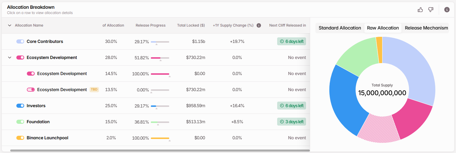 - Vested Allocations: Core Contributors, Investors, and Foundation
