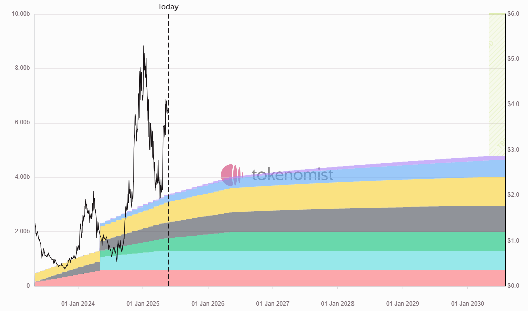 - Vested Allocations: Series B, Community Reserve, Early Contributors, and Mysten Labs Treasury