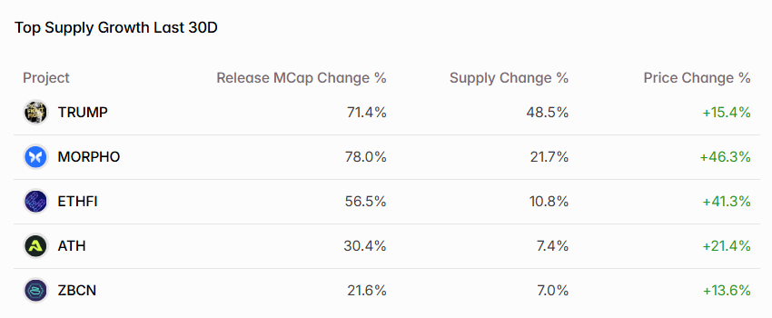 The bullish market sentiment has lifted even tokens with high emission rates, many of which posted notable gains despite large unlocks in recent weeks. This suggests that in the current risk-on environment, investor appetite is strong enough to absorb selling pressure — especially when broader macro factors and ETH-led optimism dominate the narrative. However, this could also mean short-term overextension, particularly for tokens with weak fundamentals or upcoming cliffs.